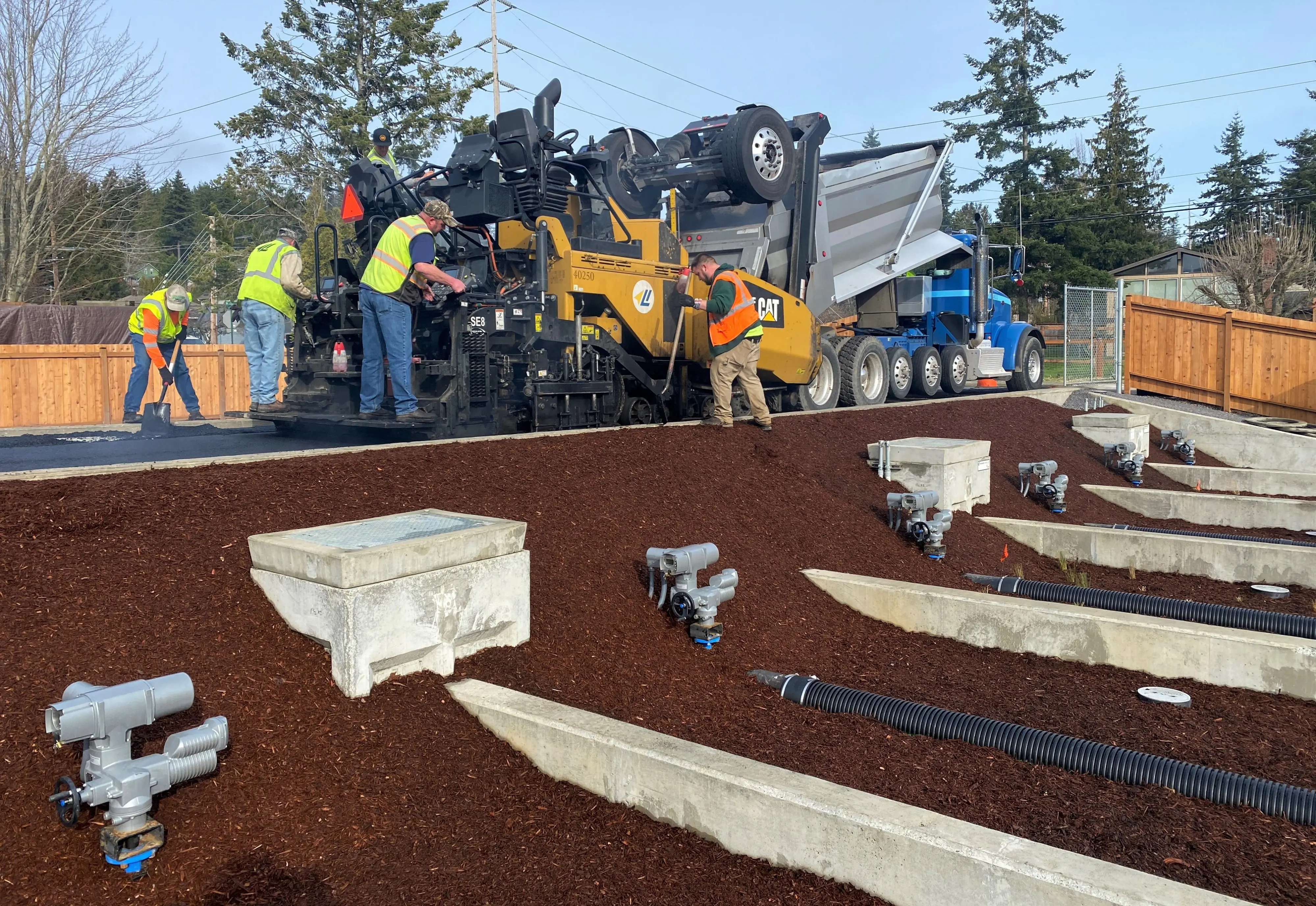 The stormwater facility at 123 Park Place, east of Britton Road and North Shore Drive, is being rebuilt to remove phosphorus from stormwater heading into Lake Whatcom. Stormwater will be treated with Phosphorus Optimized Stormwater Treatment (POST) material, or media, which is a soil mixed with other components to facilitate the removal of the phosphorus from the stormwater before it is released into the lake. The POST system is a new stormwater treatment system; this is the first full-size system installed with the POST media for stormwater treatment. During the project, travelers can expect increased traffic during construction and intermittent lane closures on North Shore Drive and adjacent to the road. Crews work 7 a.m. to 7 p.m. Monday through Thursday (some Fridays) and have completed installation of the POST media. The only remaining work is paving the access road, electrical work, cleanup and landscaping. The seasonal exemption is complete and the only remaining work is not land-disturbing. For more information, please contact Aric Smathers, P.E. project engineer, at (360) 778-7942 or arsmathers@cob.org or visit the Park Place Water Quality Facility Reconstruction project webpage.
