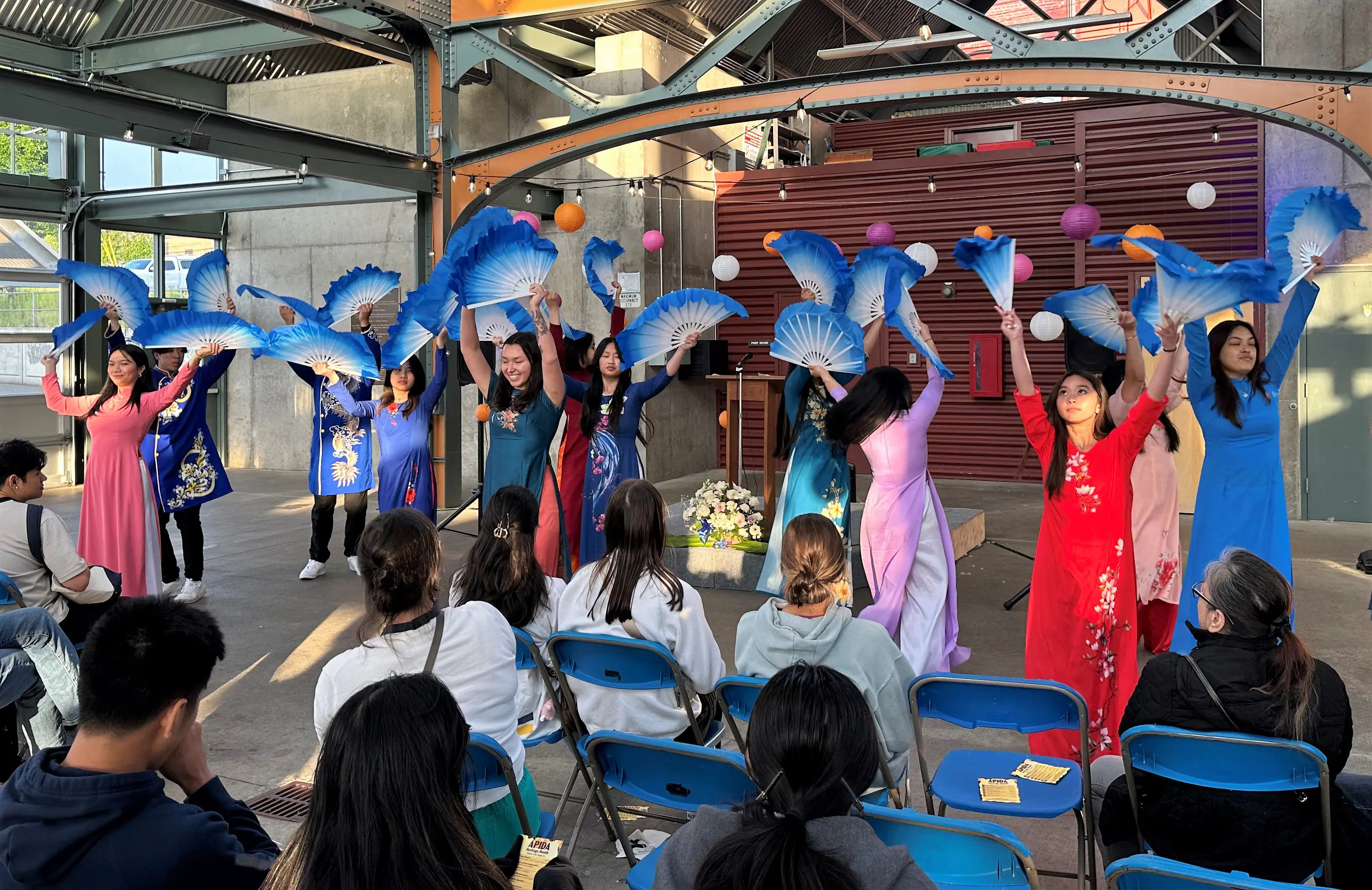Stories that shape us: Thank you to the 170 people who attended the May 24 Stories that Shape Us event at Depot Market Square, held to honor the identities, experiences, histories and cultures of Asian, Pacific Islander, and Desi-identified (APIDA) individuals during APIDA Heritage Month. In the photo above, members of the WWU Vietnamese Student Association perform a fan dance as part of the program. This was one of many local events and opportunities scheduled this month to engage with others and learn about APIDA communities. To learn more, see the APIDA Heritage Month website.