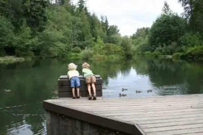 Whatcom Falls Park is located at 1401 Electric Avenue in the Whatcom Falls Neighborhood. There are two entrances to Whatcom Falls Park. To access the sports field and upper playground, use the entrance at 1401 Electric Ave. To access the picnic shelters, fish hatchery, lower playground, creek bridge and derby pond, use the entrance on Silver Beach Road off Lakeway Drive.