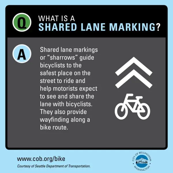 Bellingham is creating a safe, well-connected network to encourage bicycling by all members of our community. The network will include new street markings to make it safer and easier for bicyclists and motorists to share our city streets. The following graphics will help you understand how they work.